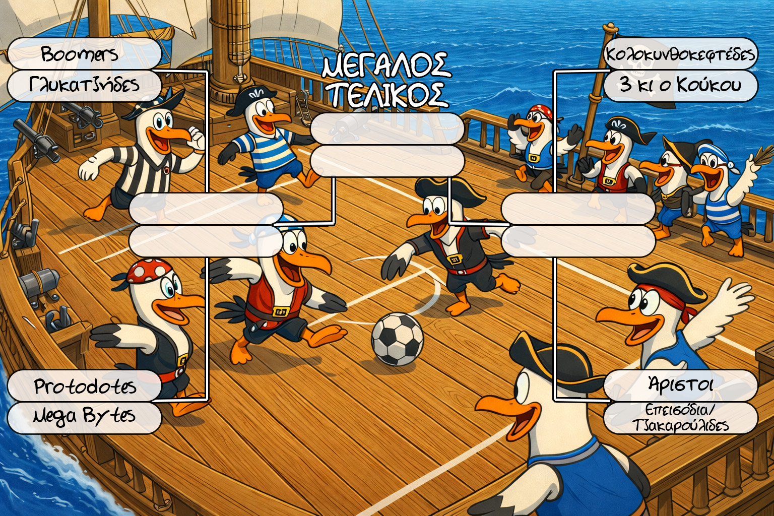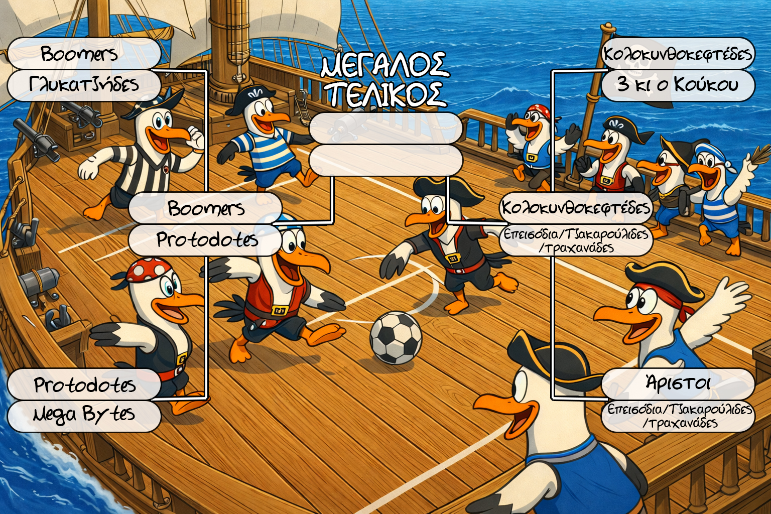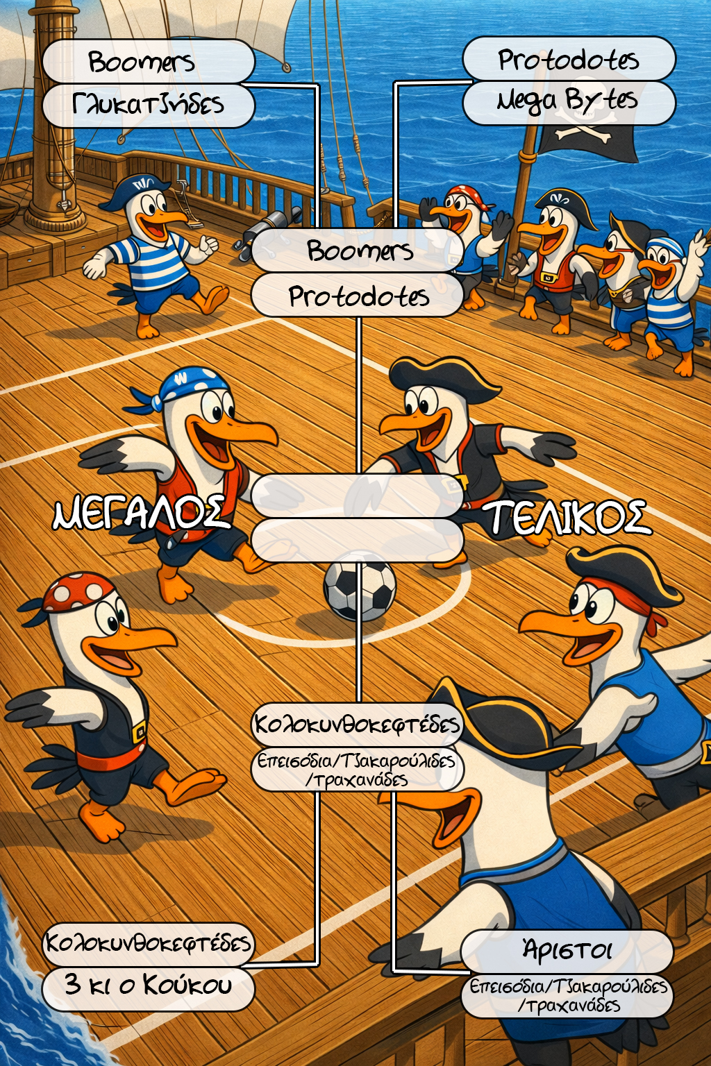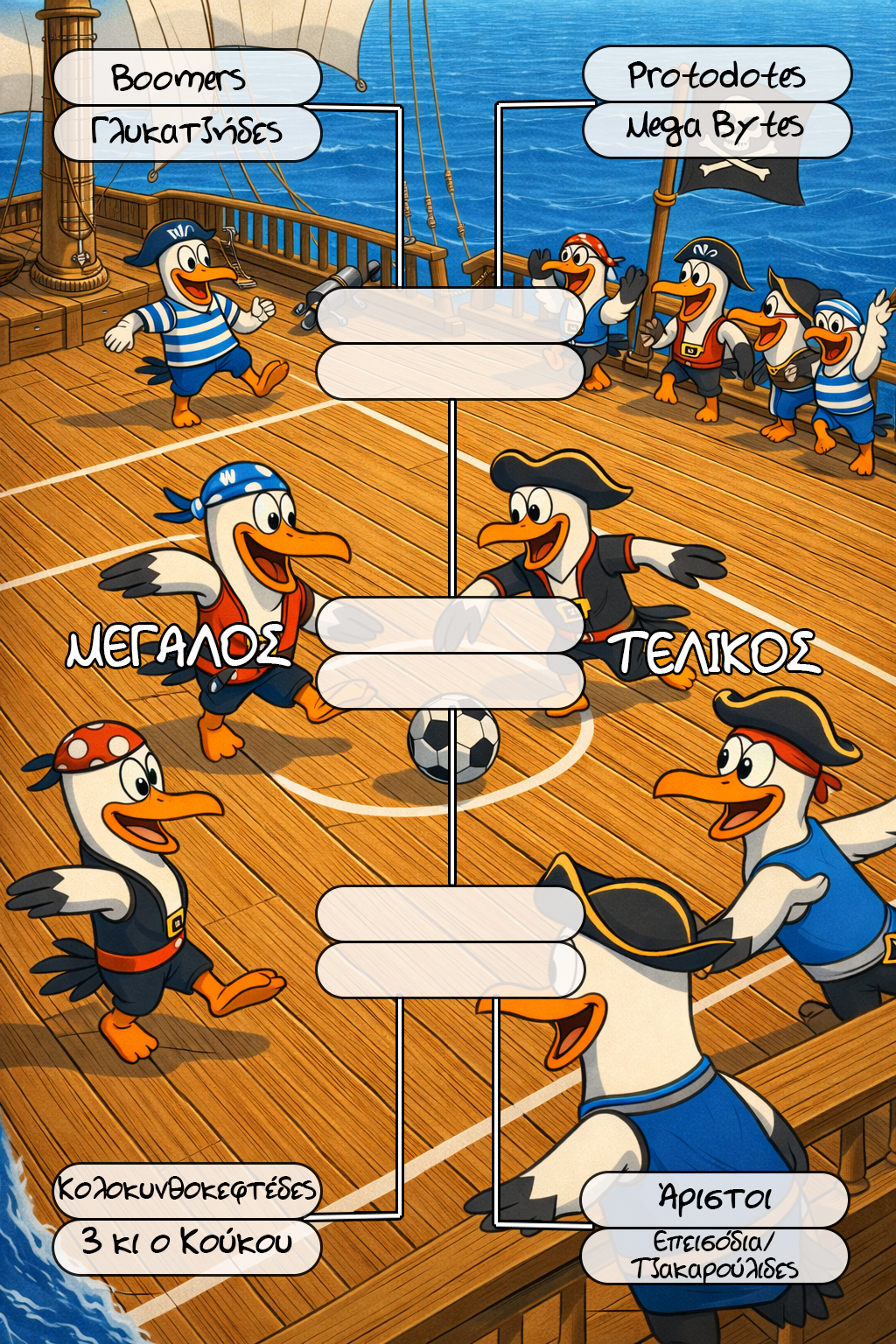 Η δεύτερη δοκιμασία σας καλεί στο πεδίο της μάχης… εκεί όπου η μπάλα γίνεται όπλο και το γήπεδο αρένα! Μόνο όποιος παίξει με πάθος και ομαδικότητα θα συνεχίσει το ταξίδι για τον θησαυρό!
